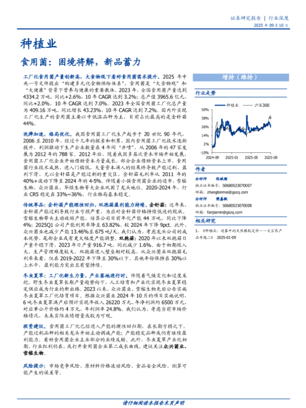 【国盛证券】【202509】种植业:食用菌:困境将解,新品蓄力-20页 证券期货研究报告