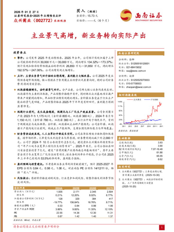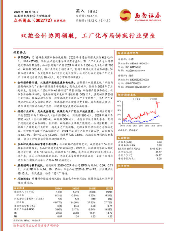 【西南证券】【202510】双孢金针协同领航,工厂化布局铸就行业壁垒-15页 证券期货研究报告