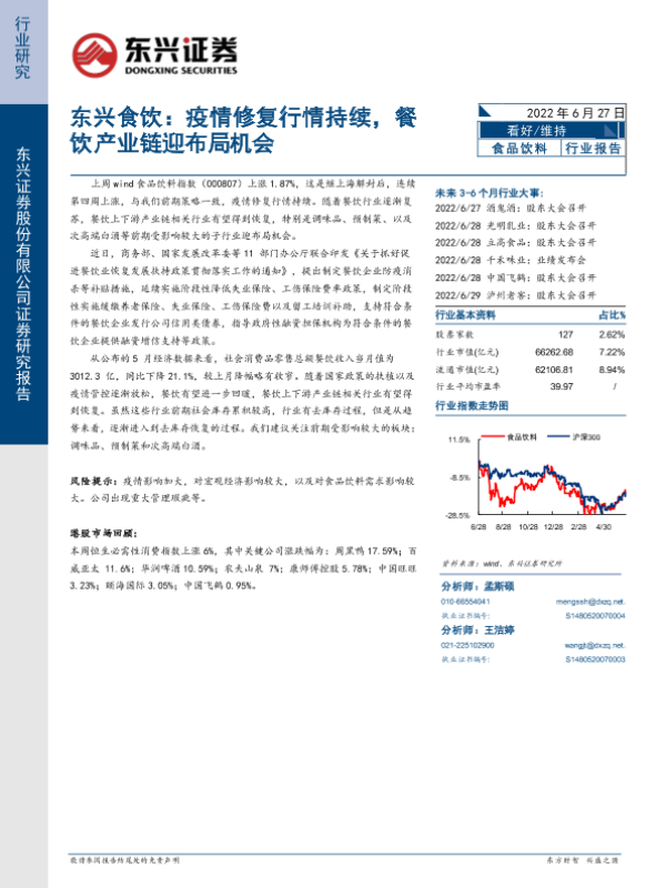 【东兴证券】【20220627】东兴食饮:疫情修复行情持续,餐饮产业链迎布局机会-7页 行业研究