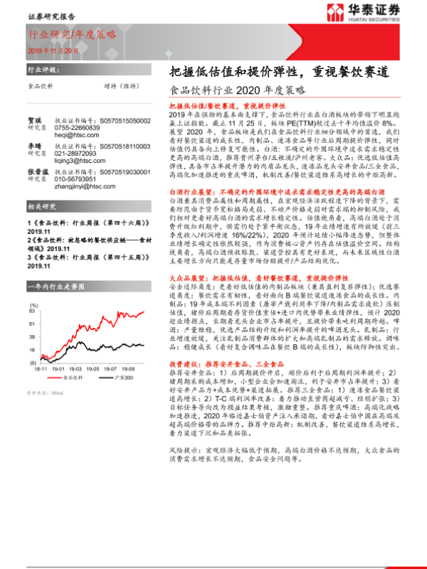 【华泰证券】【20191129】食品饮料行业2020年度策略:把握低估值和提价弹性,重视餐饮赛道-30页 行业研究
