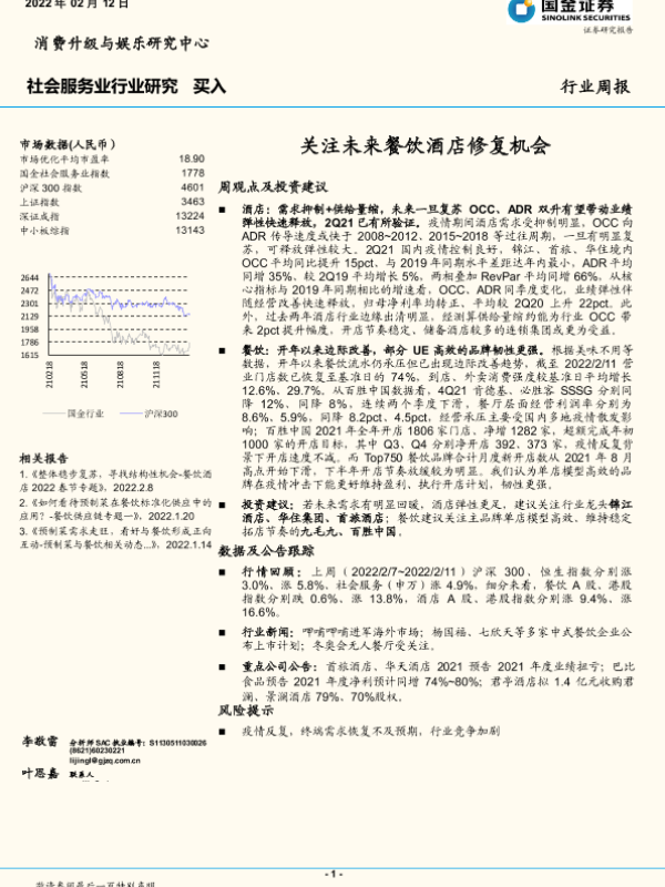 【国金证券】【20220212】社会服务业行业研究:关注未来餐饮酒店修复机会-15页 行业研究