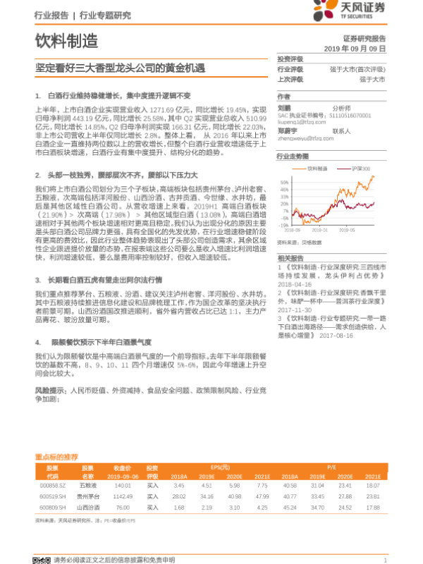 【天风证券】【20190909】饮料制造行业专题研究:坚定看好三大香型龙头公司的黄金机遇-10页 行业研究