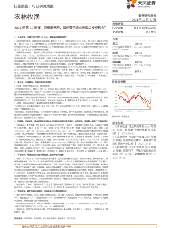 【天风证券】【20241007】2024年第39周报:四季度已至,如何看待农业各板块投资机会?-14页 行业研究