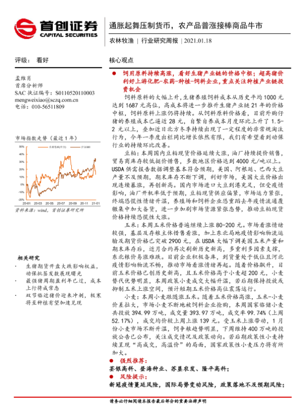 【首创证券】【20210118】20210118-首创证券-农林牧渔行业研究周报:通胀起舞压制货币,农产品普涨接棒商品牛市-23页 行业研究