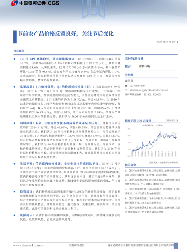 【银河证券】【202602】节前农产品价格反馈良好,关注节后变化-13页 证券期货研究报告