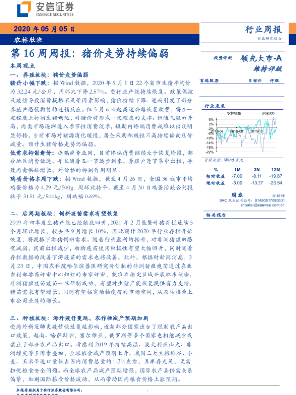 【安信证券】【20200505】20200505-安信证券-农林牧渔第16周周报:猪价走势持续偏弱-25页 行业研究