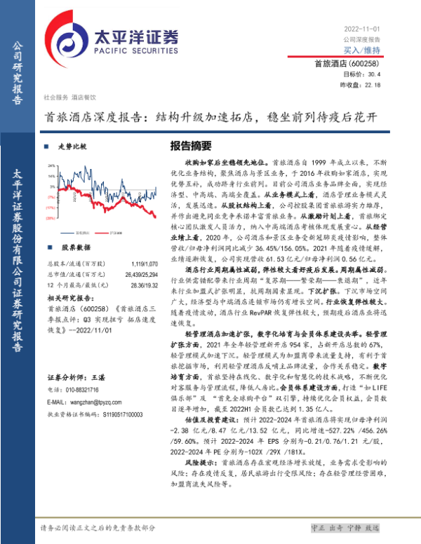 【太平洋证券】【20221101】首旅酒店深度报告:结构升级加速拓店,稳坐前列待疫后花开-33页 行业研究