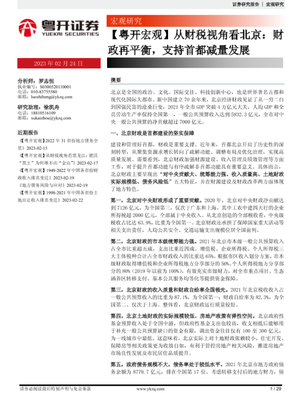 【粤开证券】【20230224】从财税视角看北京:财政再平衡,支持首都减量发展-29页 行业研究