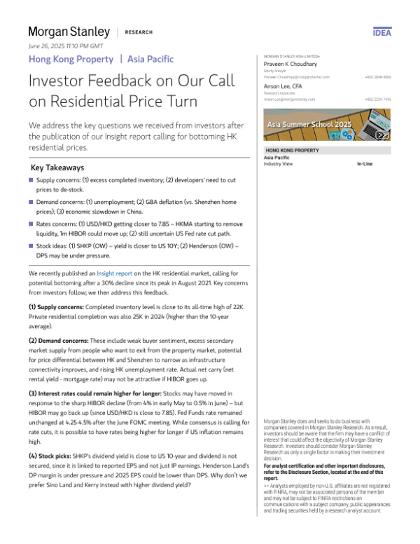 【Morgan Stanley】【20250626】Hong Kong Property Investor Feedback on Our Call on Residential Price Turn-17页 行业研究