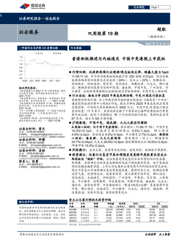 【国信证券】【20211121】社会服务双周报第19期:香港积极推进与内地通关 中国中免港股上市获批-8页 行业研究