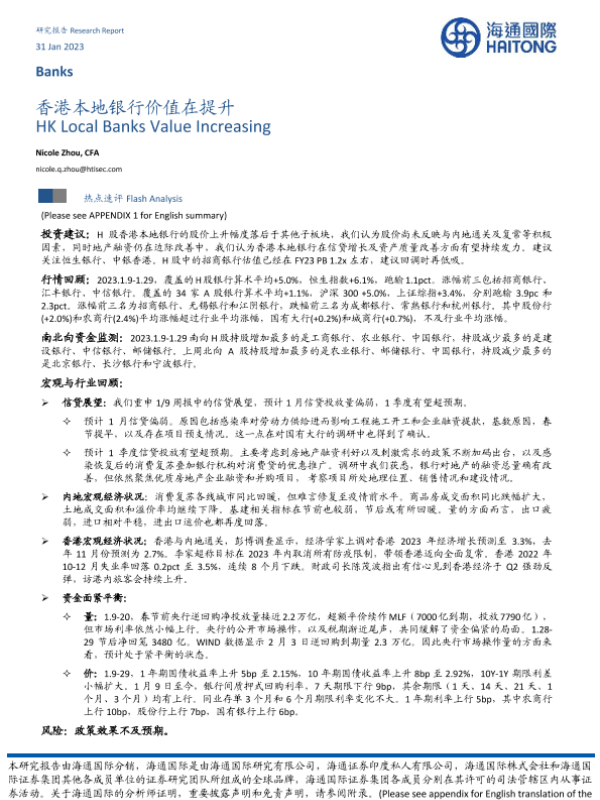 【海通国际】【20230131】香港本地银行价值在提升-12页 行业研究