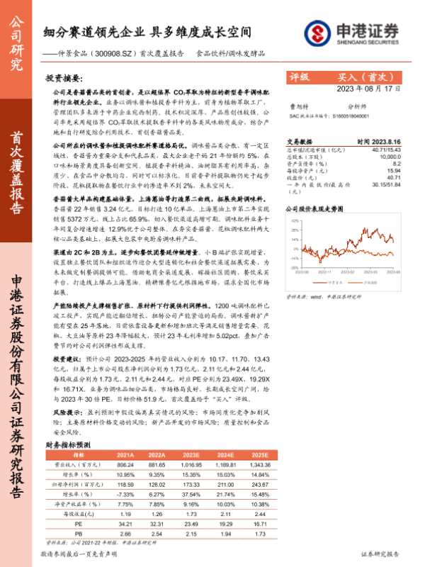 【申港证券】【20230817】20230817-申港证券-仲景食品-300908.SZ-首次覆盖报告:细分赛道领先企业 具多维度成长空间-29页 行业研究