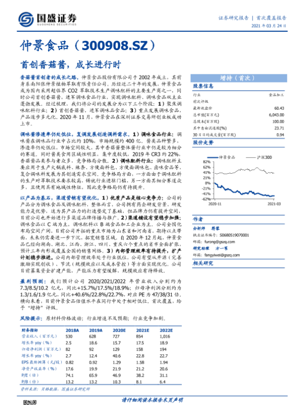 【国盛证券】【20210324】仲景食品-300908.SZ-首创香菇酱,成长进行时-25页 行业研究