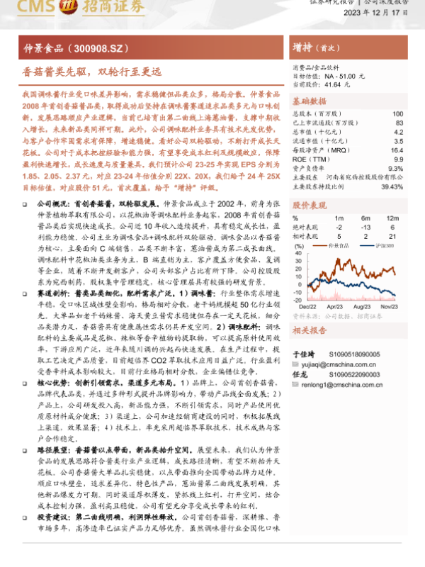 【海通证券】【20231217】仲景食品-300908.SZ-香菇酱类先驱,双轮行至更远-32页 行业研究