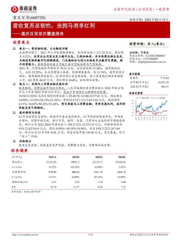 【浙商证券】【20230310】重庆百货首次覆盖报告:营收复苏显韧性,坐拥马消享红利-18页 行业研究