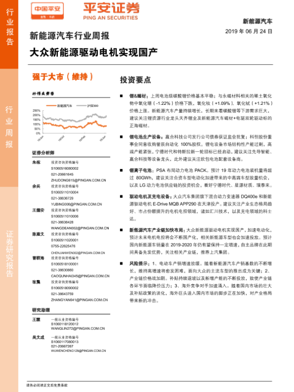 【平安证券】【20190624】新能源汽车行业周报:大众新能源驱动电机实现国产-9页 行业研究