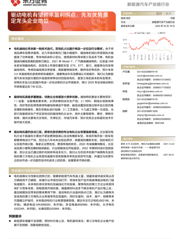 【东方证券】【20220216】新能源汽车产业链行业:驱动电机有望迎来盈利拐点,先发优势奠定龙头企业地位-30页 行业研究