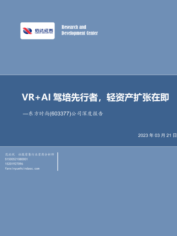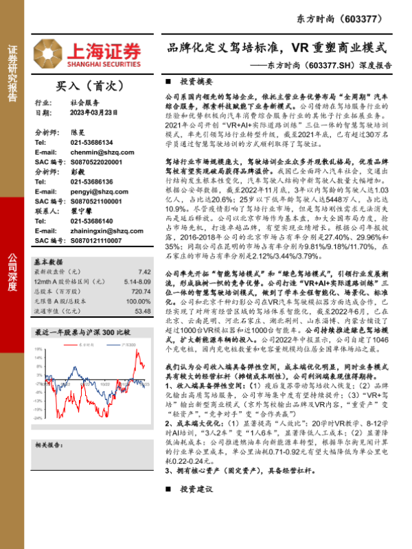 【上海证券】【20230323】20230323-上海证券-东方时尚-603377.SH-深度报告:品牌化定义驾培标准,VR重塑商业模式-24页 行业研究