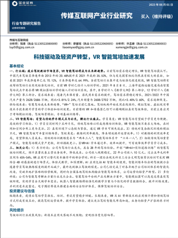 【国金证券】【20230601】传媒互联网产业行业研究:科技驱动及轻资产转型,VR智能驾培加速发展-17页 行业研究