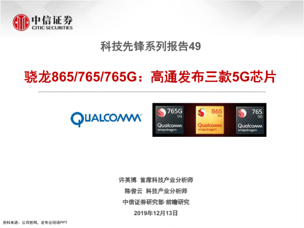 【中信证券】【20191213】科技先锋系列报告49:骁龙865 765 765G:高通发布三款5G芯片-18页 行业研究