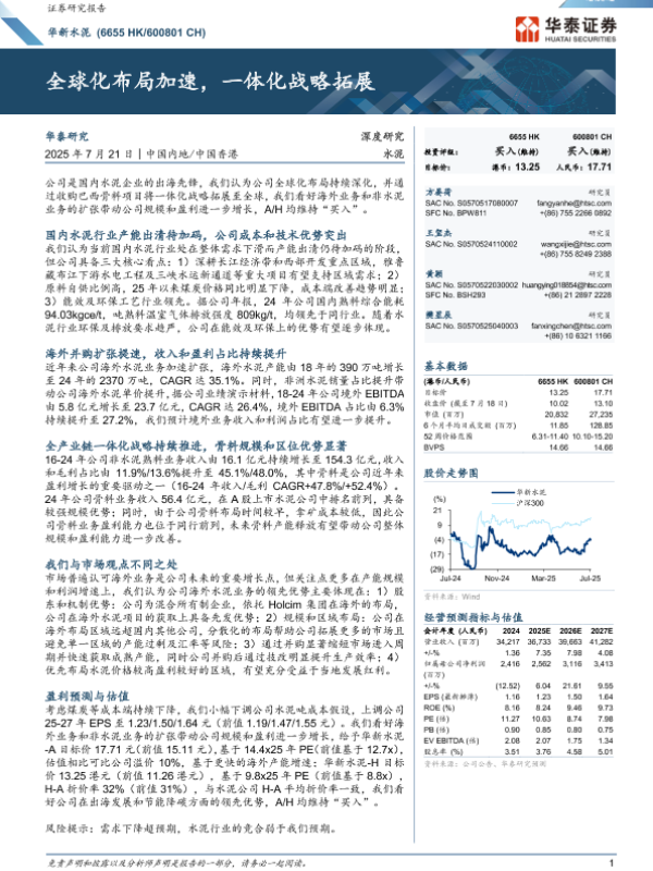 【华泰证券】【20250721】华新水泥-全球化布局加速,一体化战略拓展-36页 公司研究