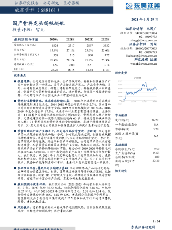 【东吴证券】【20210629】威高骨科-688161.SH-国产骨科龙头扬帆起航-34页 行业研究