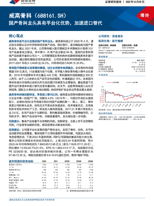 【国信证券】【20221009】威高骨科-688161.SH-国产骨科龙头具有平台化优势,加速进口替代-33页 行业研究