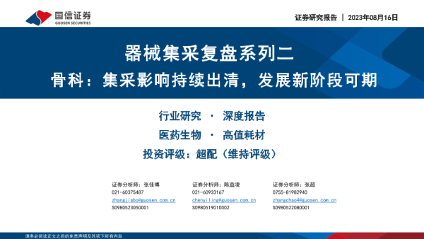 【国信证券】【20230816】器械集采复盘系列二-骨科-集采影响持续出清-发展新阶段可期-36页 行业研究