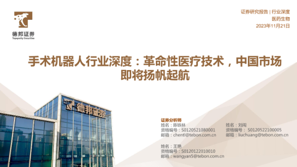 【德邦证券】【20231121】手术机器人行业深度:革命性医疗技术,中国市场即将扬帆起航-61页 证券期货研究报告