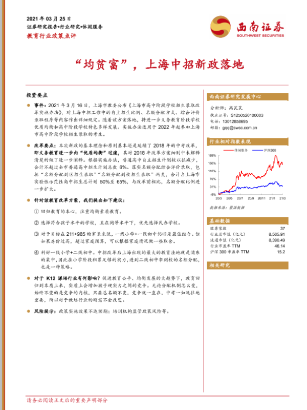 【西南证券】【20210325】教育行业政策点评:“均贫富”,上海中招新政落地-6页 行业研究