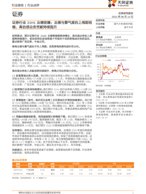 【天风证券】【20210614】证券行业21H1业绩前瞻:业绩与景气度向上周期明确,高估值业务贡献持续提升-5页 行业研究
