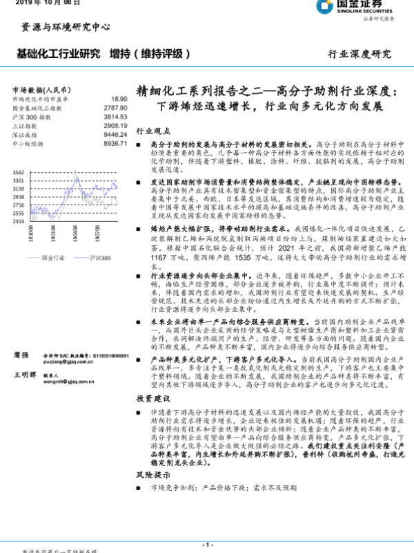 【国金证券】【20191008】精细化工系列报告之二—高分子助剂行业深度:下游烯烃迅速增长,行业向多元化方向发展-26页 行业研究