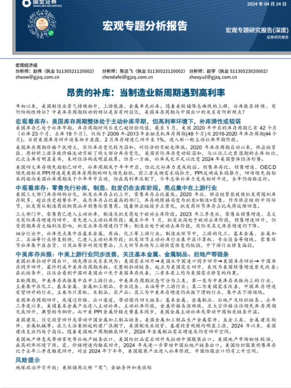 【国金证券】【20240424】宏观专题分析报告:昂贵的补库,当制造业新周期遇到高利率-21页 行业研究