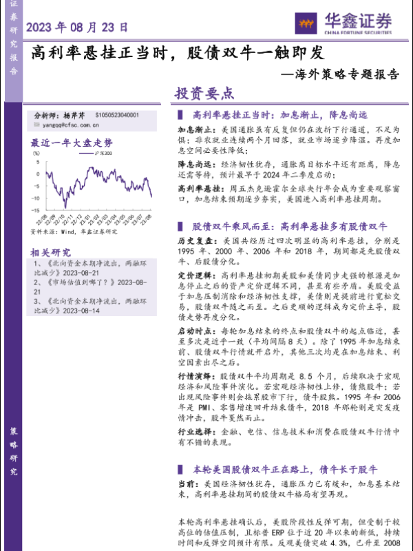 【华鑫证券】【20230823】海外策略专题报告:高利率悬挂正当时,股债双牛一触即发-30页 行业研究
