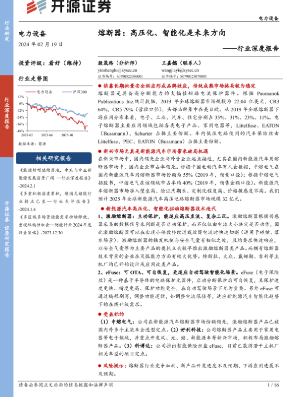 【开源证券】【20240219】电力设备行业深度报告:熔断器:高压化、智能化是未来方向-16页 行业研究