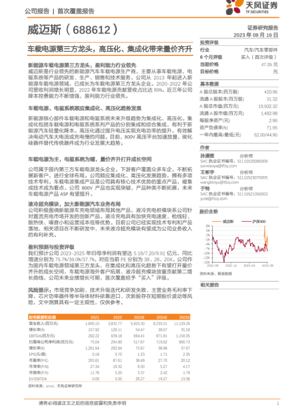 【天风证券】【20230816】威迈斯-688612.SH-车载电源第三方龙头,高压化、集成化带来量价齐升-28页 行业研究