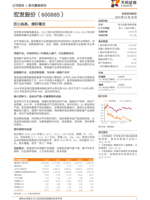 【天风证券】【20230728】宏发股份-匠心独具,厚积薄发-11页 行业研究