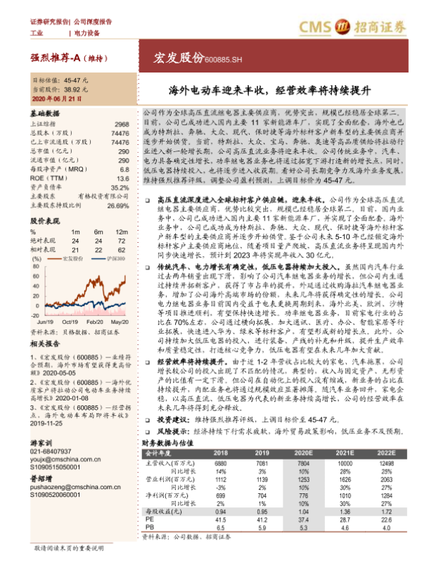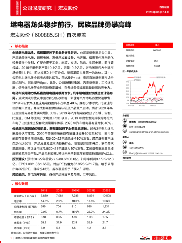 【西部证券】【20200614】20200614-西部证券-宏发股份-600885.SH-首次覆盖:继电器龙头稳步前行,民族品牌勇攀高峰-42页 行业研究