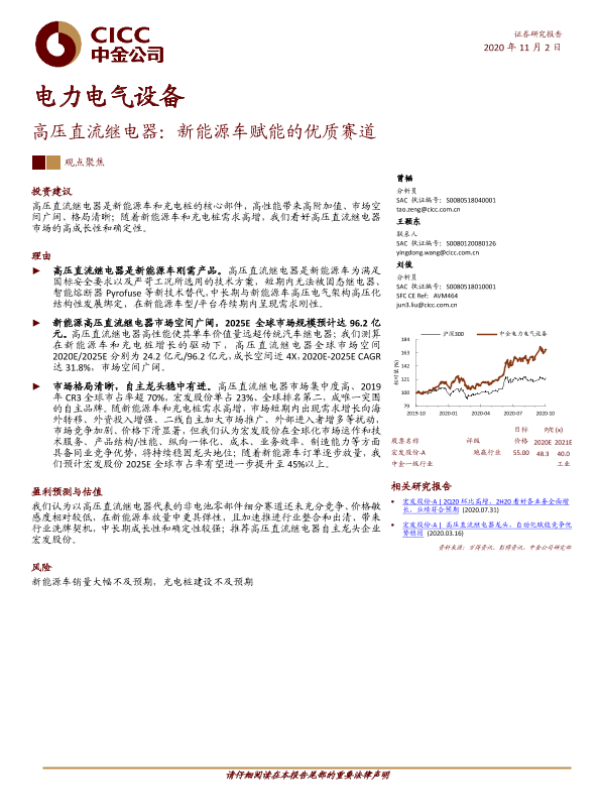 【中金公司】【20201102】电力电气设备:高压直流继电器:新能源车赋能的优质赛道-28页 行业研究