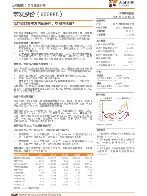 【天风证券】【20200405】我们如何看宏发的成长性、空间与估值?-28页 行业研究