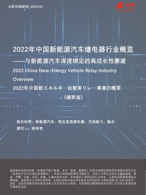 【头豹研究院】【20220301】2022年中国新能源汽车继电器行业概览——与新能源汽车深度绑定的高成长性赛道(摘要版)-12页 行业研究