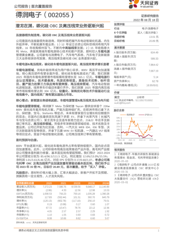 【天风证券】【20220818】20220818-天风证券-得润电子-002055.SZ-潜龙在渊,碳化硅OBC及高压线束业务逐渐兴起-28页 行业研究