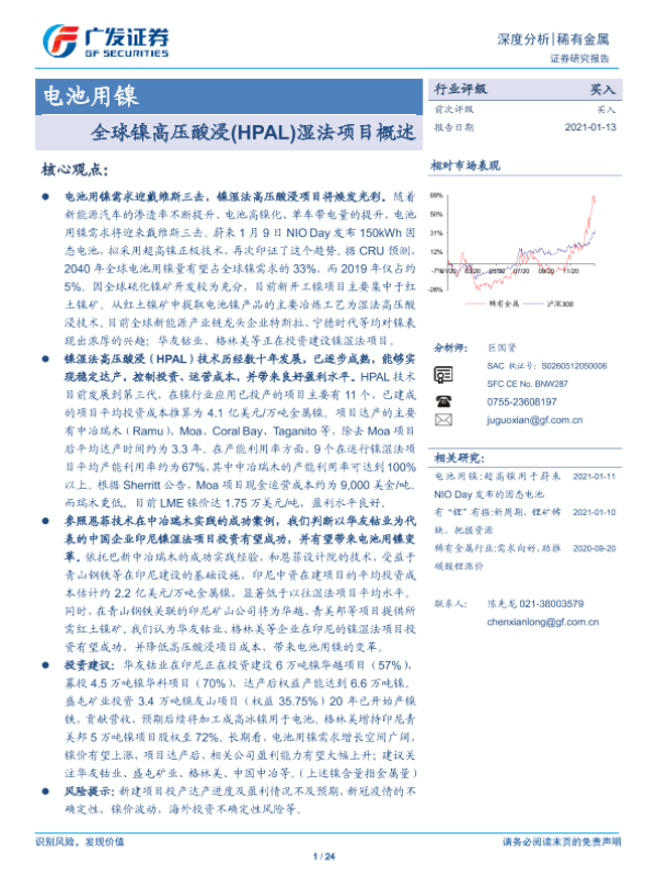 【广发证券】【20210113】20210113-广发证券-电池用镍深度分析:全球镍高压酸浸(HPAL)湿法项目概述-24页 行业研究