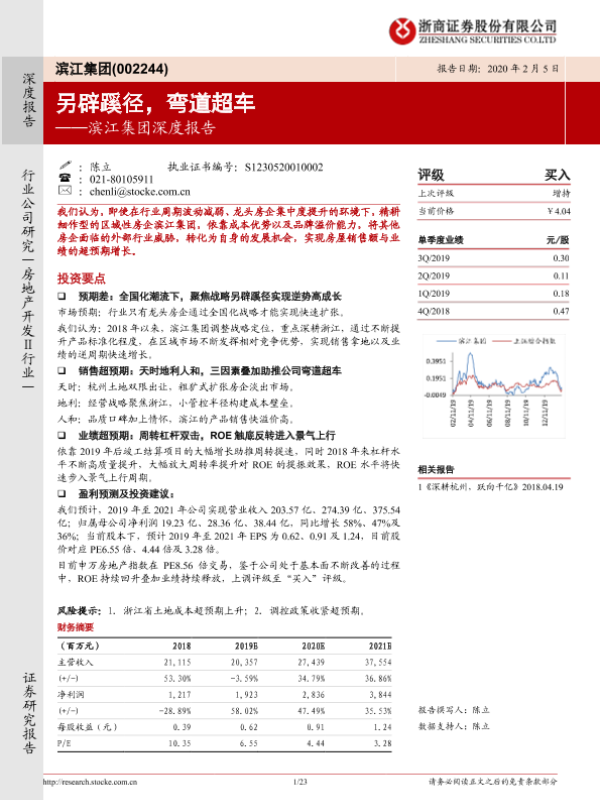 【浙商证券】【20200205】滨江集团深度报告:另辟蹊径,弯道超车-23页 行业研究