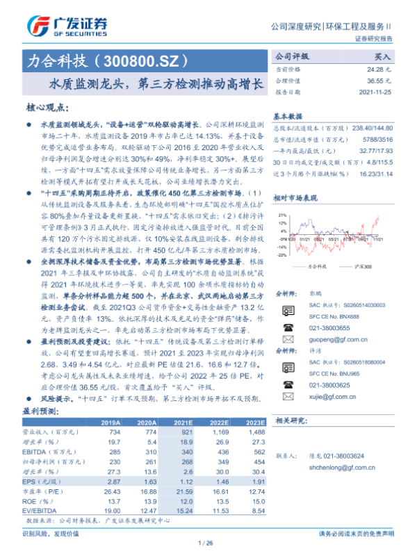 【广发证券】【20211125】力合科技(300800.SZ)-水质监测龙头,第三方检测推动高增长-26页 行业研究