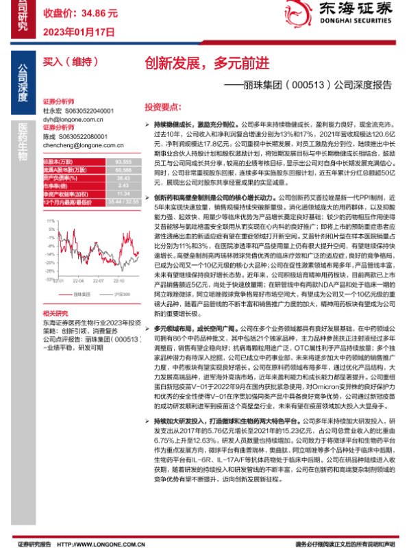 【东海证券】【20230117】创新发展,多元前进——丽珠集团(000513)公司深度报告-35页 行业研究