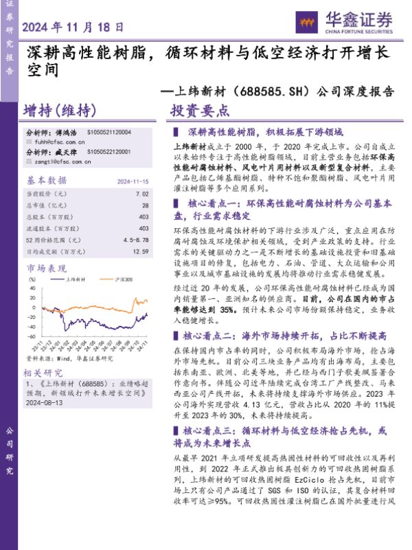 【华鑫证券】【20241118】上纬新材(688585)公司深度报告:深耕高性能树脂,循环材料与低空经济打开增长空间-25页 行业研究
