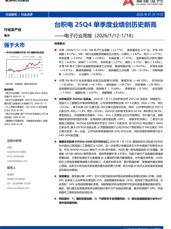 【爱建证券】【202601】电子行业周报:台积电25Q4单季度业绩创历史新高-12页 证券期货研究报告