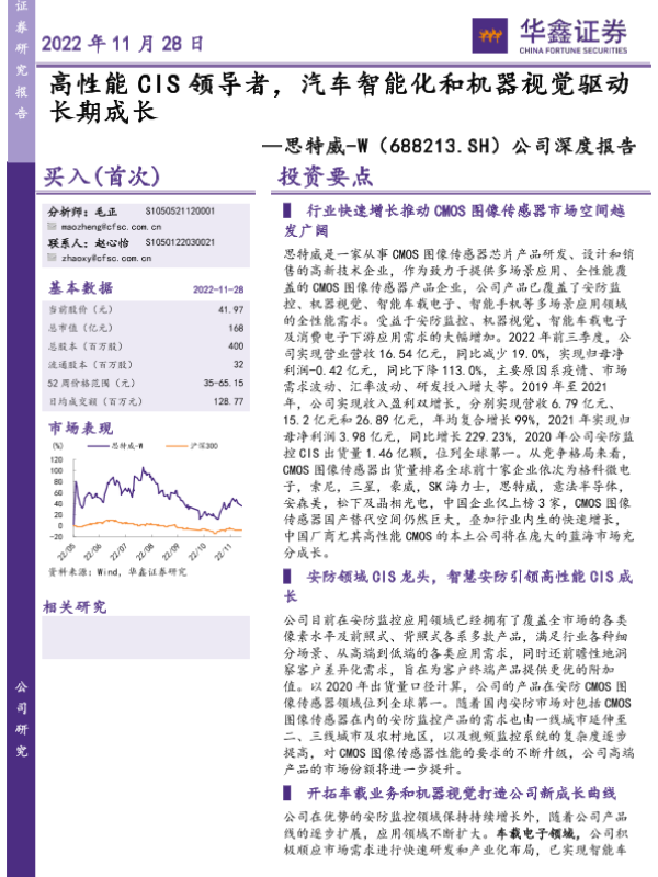 【华鑫证券】【20221128】20221128-华鑫证券-思特威-688213.SH-公司深度报告:高性能CIS领导者,汽车智能化和机器视觉驱动长期成长-42页 行业研究