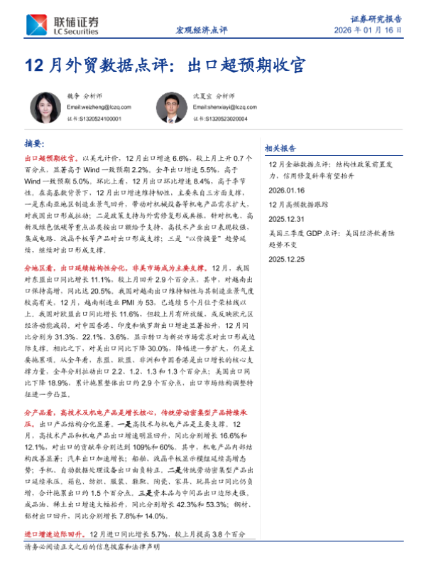 【联储证券】【202601】12月外贸数据点评:出口超预期收官-10页 证券期货研究报告